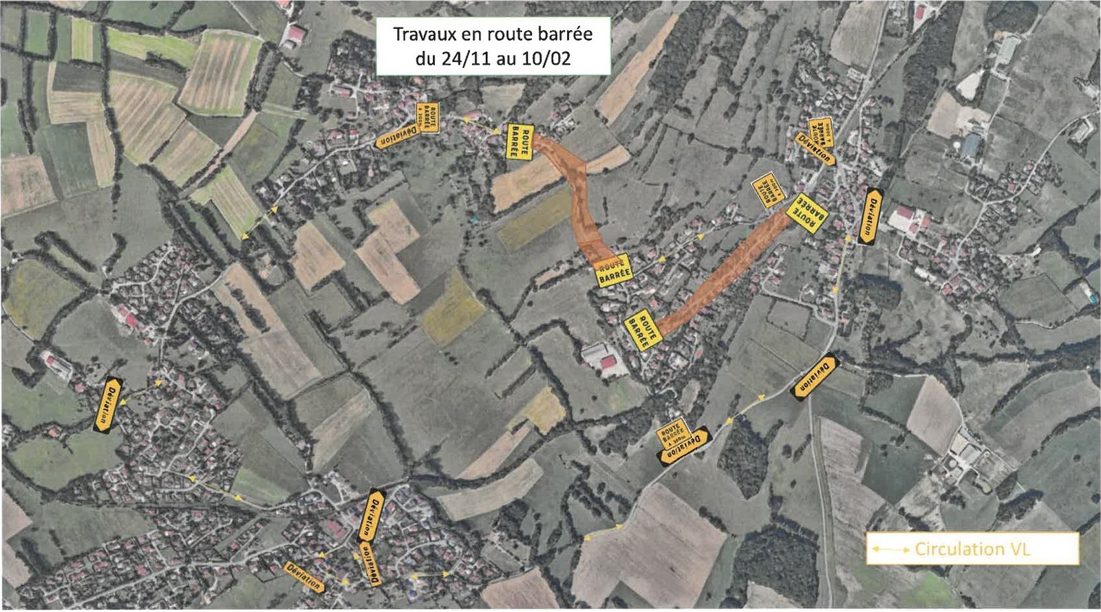 Le chantier de réseau d’eau potable va s’étendre vers le bas de la route de Mourex. A partir du 27 novembre et jusqu’au mardi 10 février 2026, la circulation sera règlementée sur :