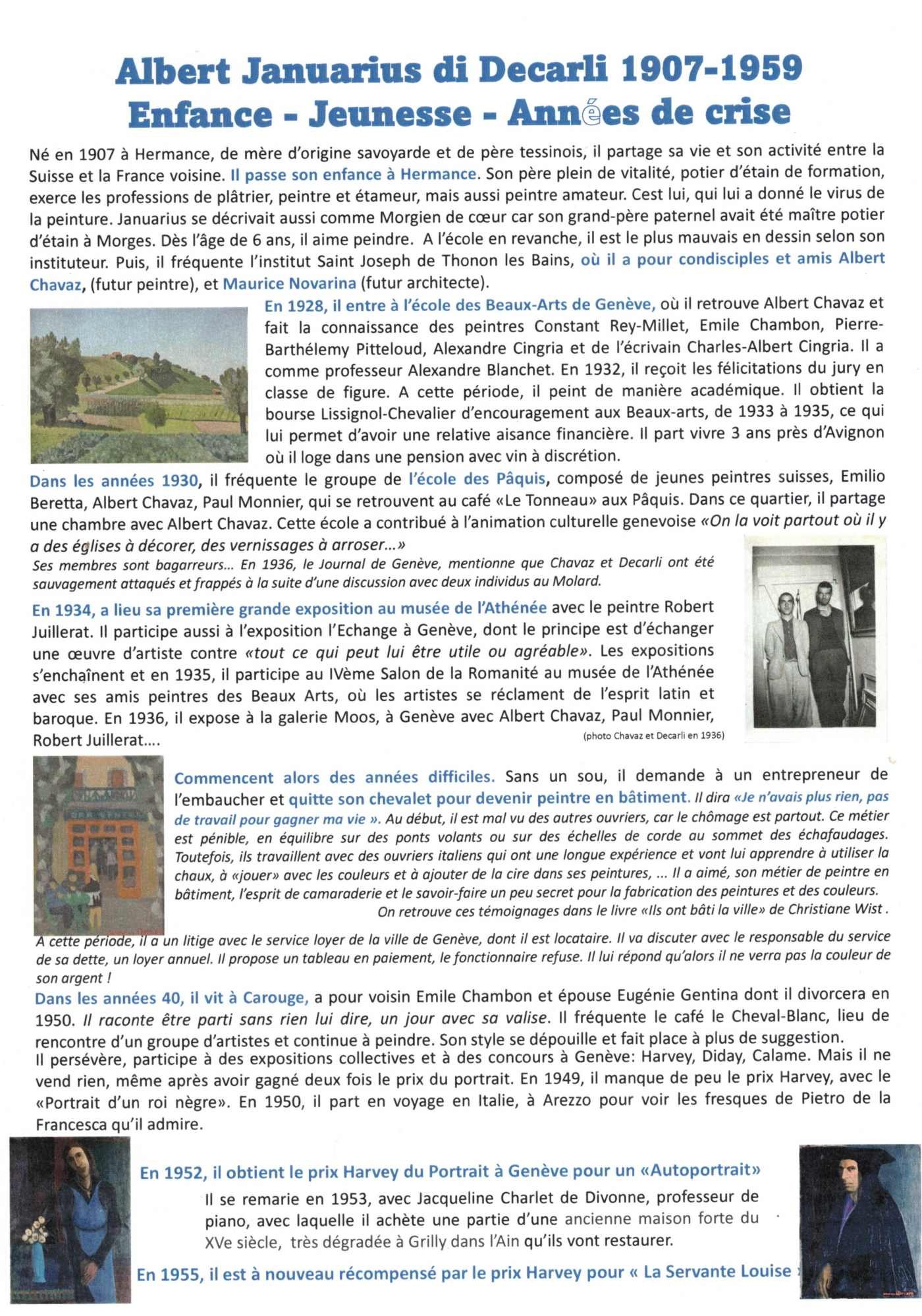 Hommage à l'Artiste Albert Januarius di Decarli (1907-1996)